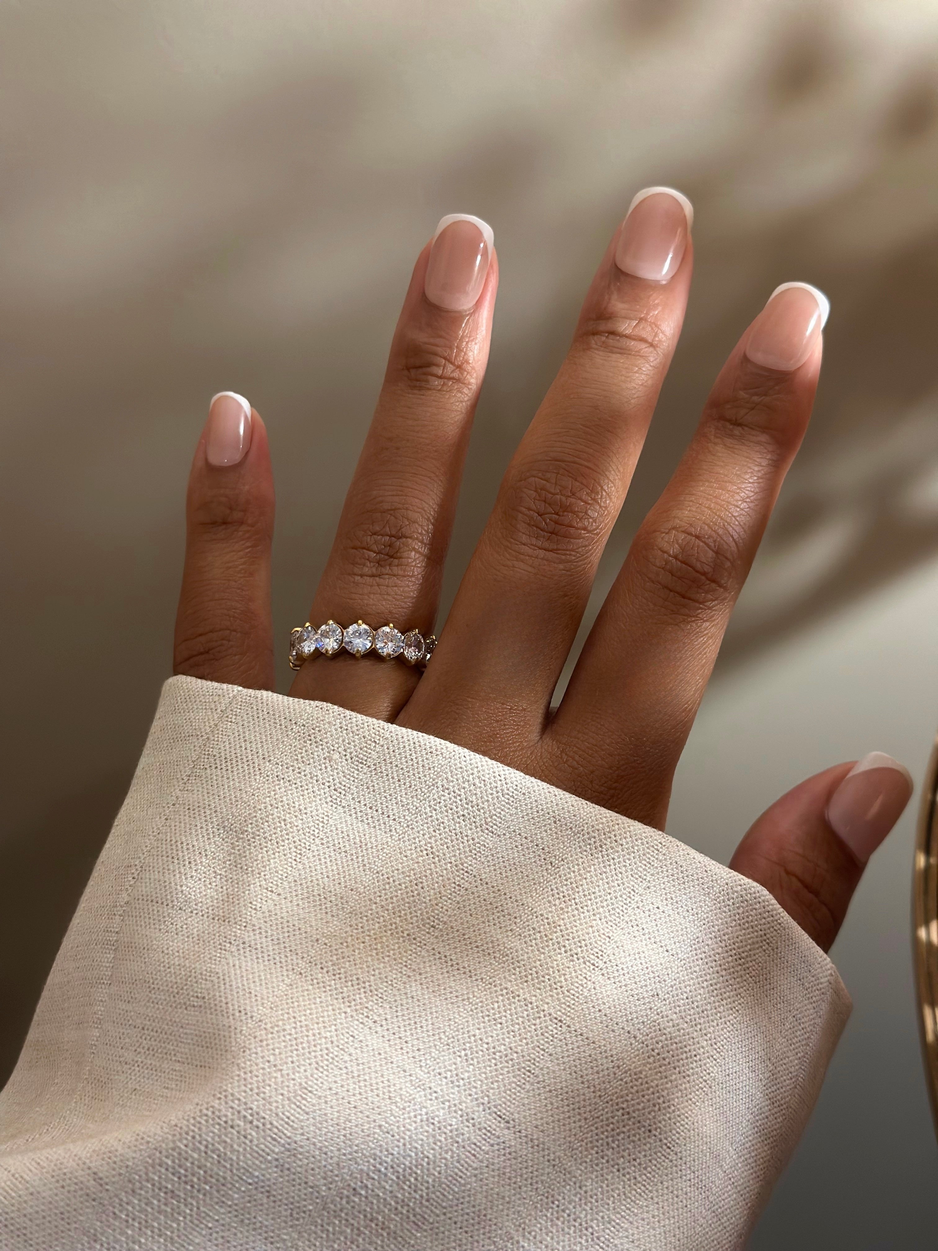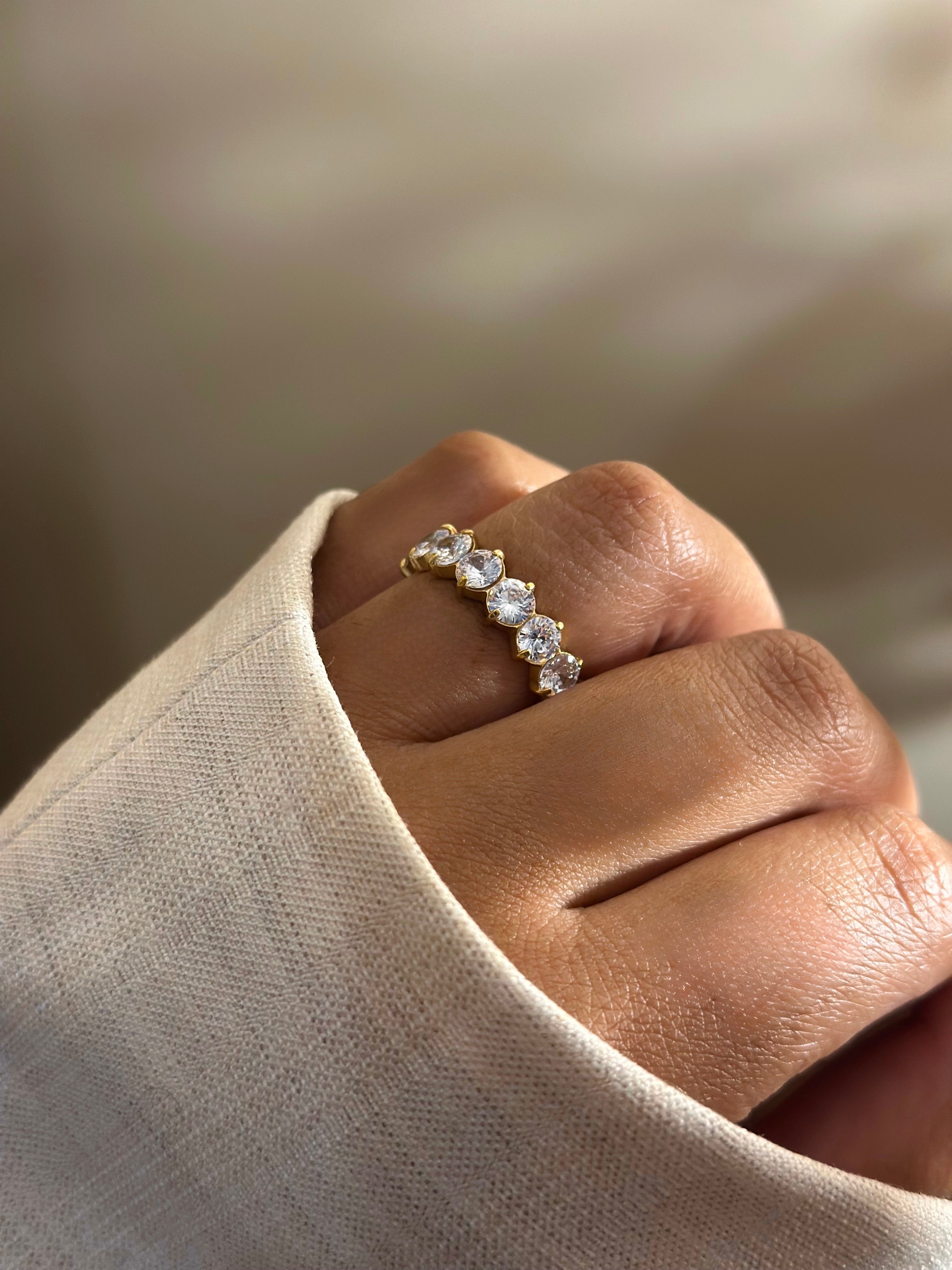 « Diamonds are forever » joue avec les codes de l’élégance éternelle. Sa couronne de zircons taille ronde épouse le doigt comme un éclat de lumière, à porter seule ou en accumulation pour briller sans effort.
