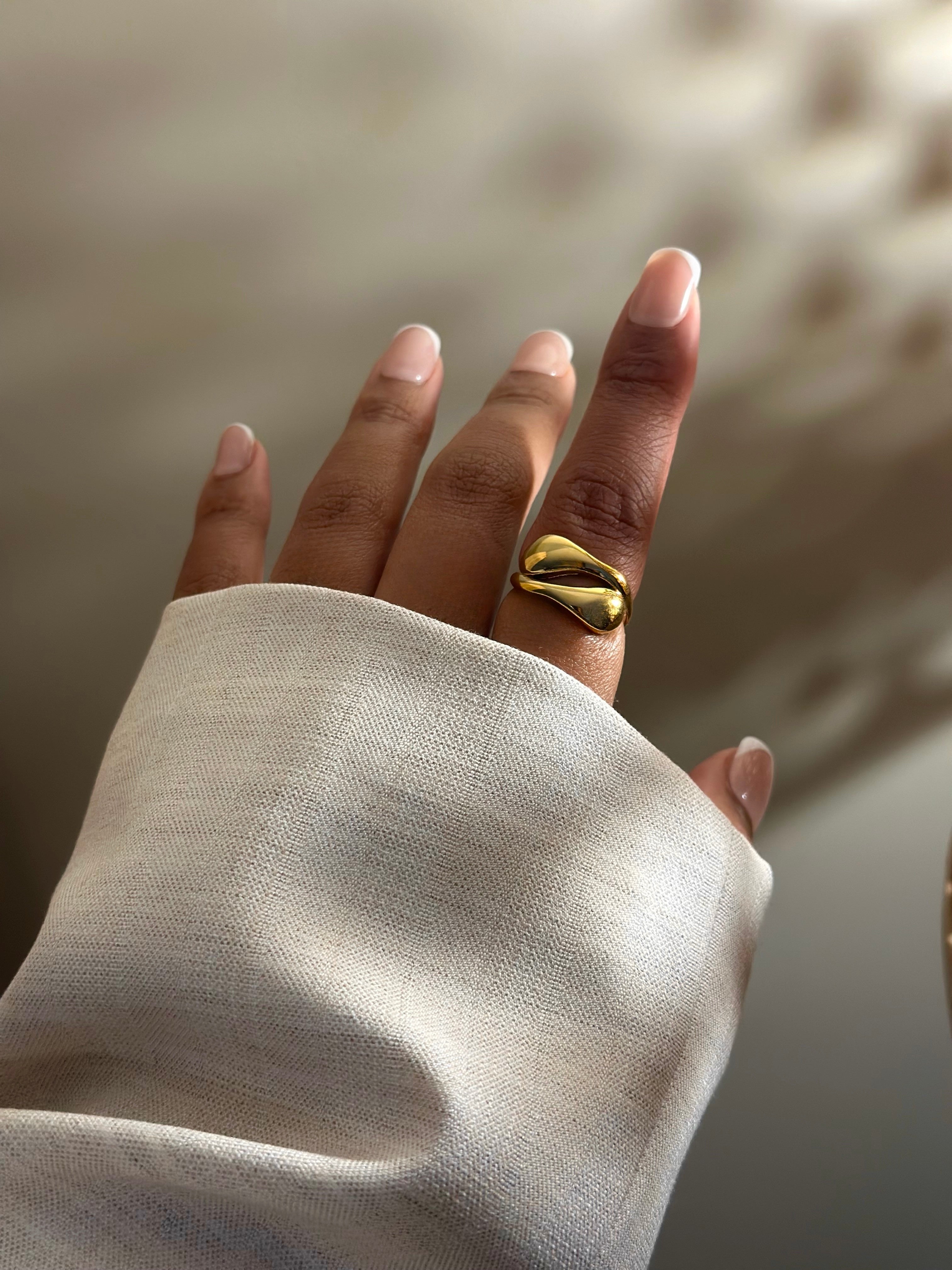La bague Nolan joue avec les volumes et les pleins/vides. Son design ouvert aux lignes arrondies crée un jeu de lumière saisissant, comme un bijou vivant. Entre minimalisme et caractère, elle s’impose comme une pièce forte, pleine de personnalité.