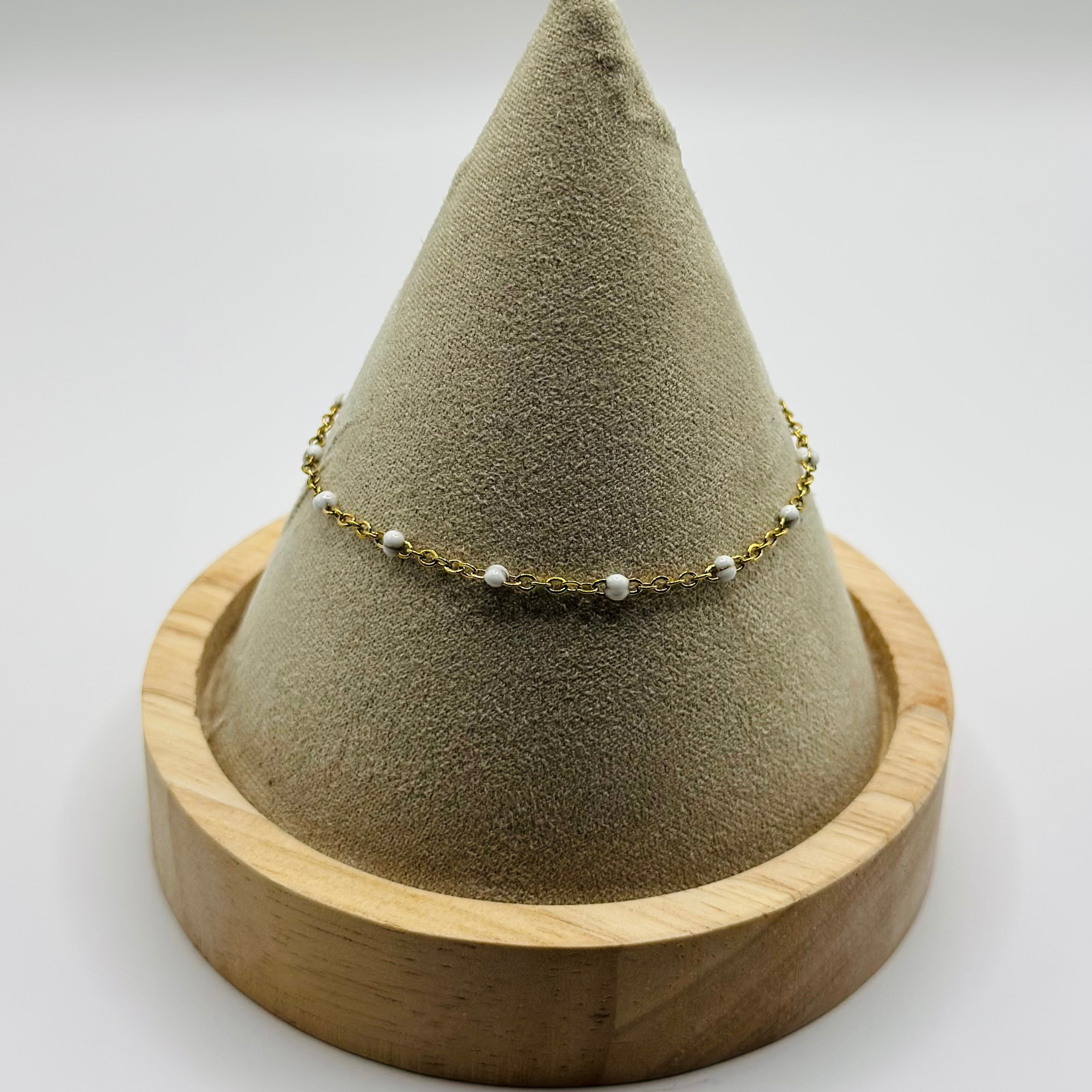 Le bracelet Noelie mêle la délicatesse des perles à la légèreté d’une chaîne dorée. Un design épuré, minimaliste, qui sublime le poignet avec subtilité. À porter seul pour une allure raffinée ou en accumulation pour un style plus audacieux.