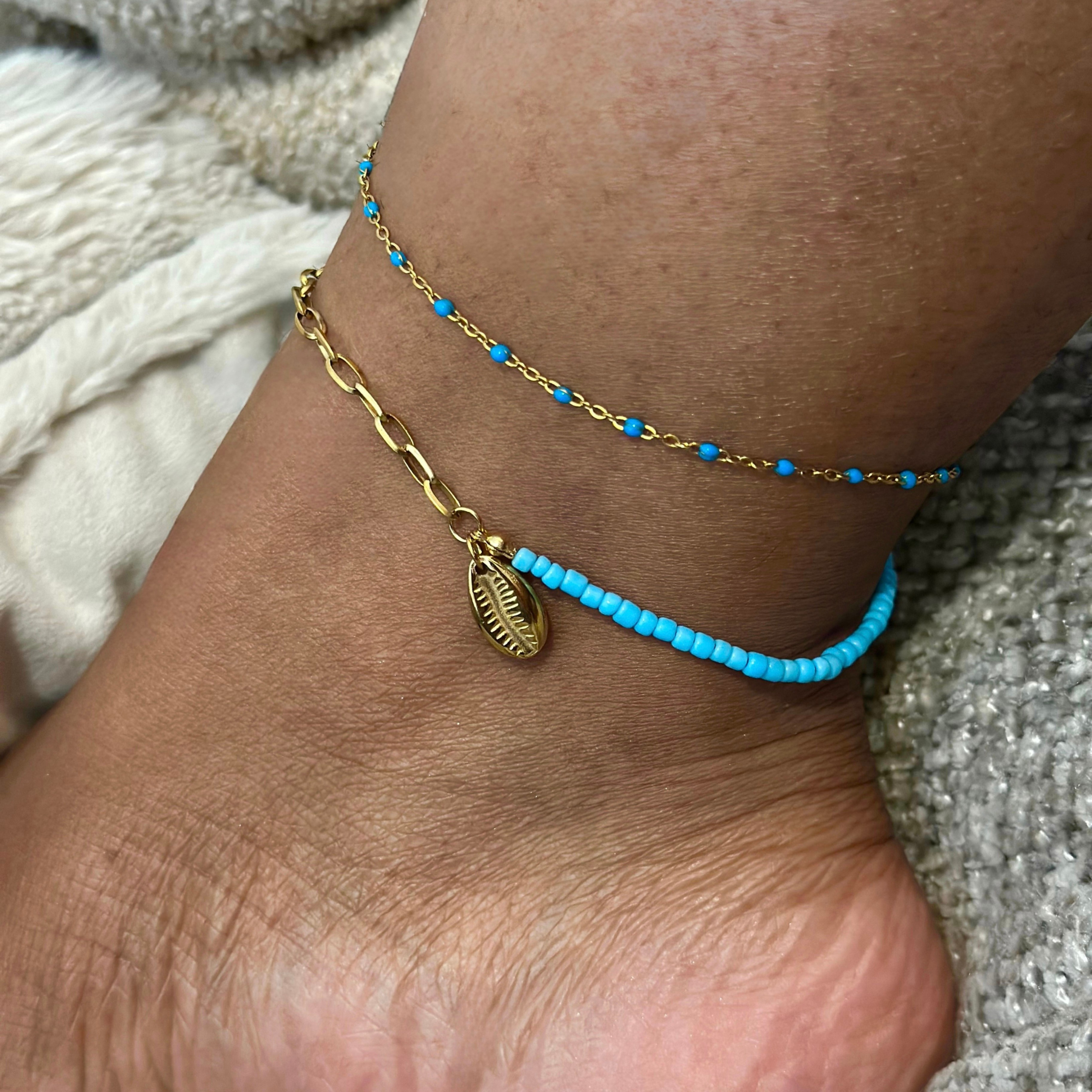 Zia, c’est la petite touche colorée qu’on adore en été. Une fine chaîne dorée parsemée de micro perles bleu azur, qui capte le regard et sublime la peau hâlée. Un bijou discret, mais qui dit “été” à chaque pas.