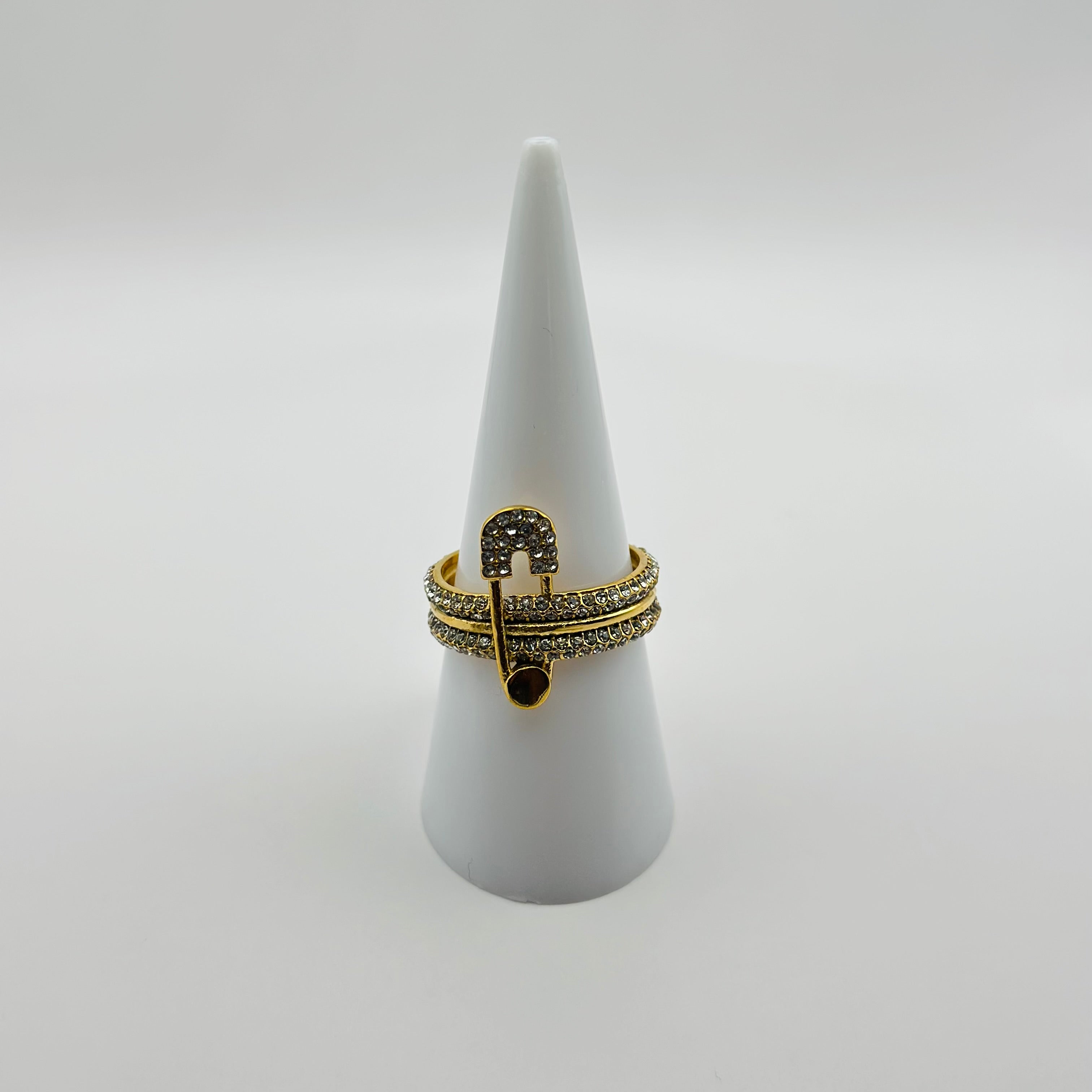 La bague Stormy détourne l’emblématique épingle à nourrice pour en faire un bijou de caractère. Son design unique, entièrement pavé de strass scintillants, apporte une touche rebelle et précieuse à ta tenue.