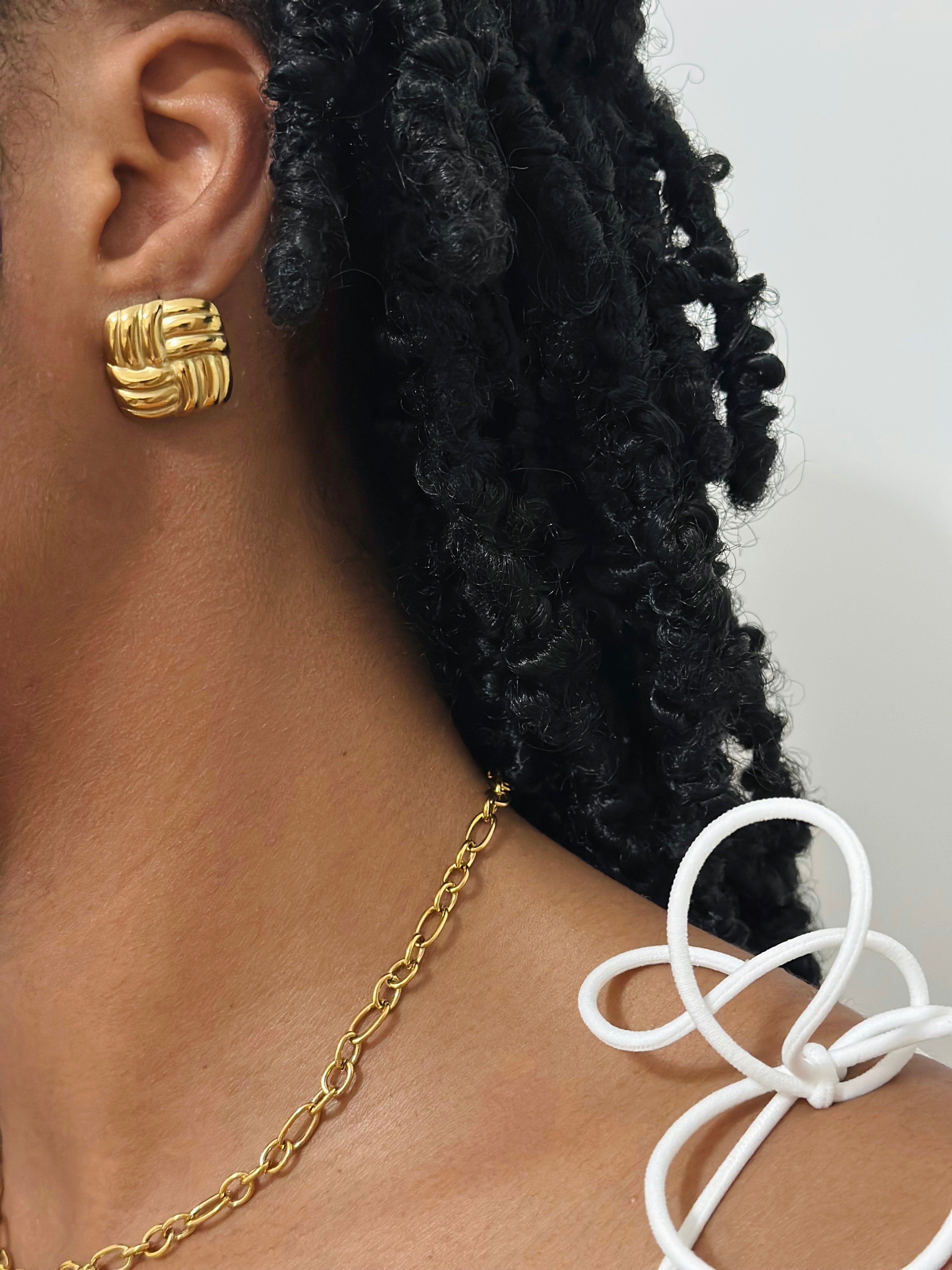 Les boucles ASSA s’inspirent des bijoux rétro des années 90, remis au goût du jour avec une touche de modernité. Leur forme carrée aux reliefs sculptés leur donne une allure audacieuse, presque architecturale. Une vraie déclaration d’élégance.