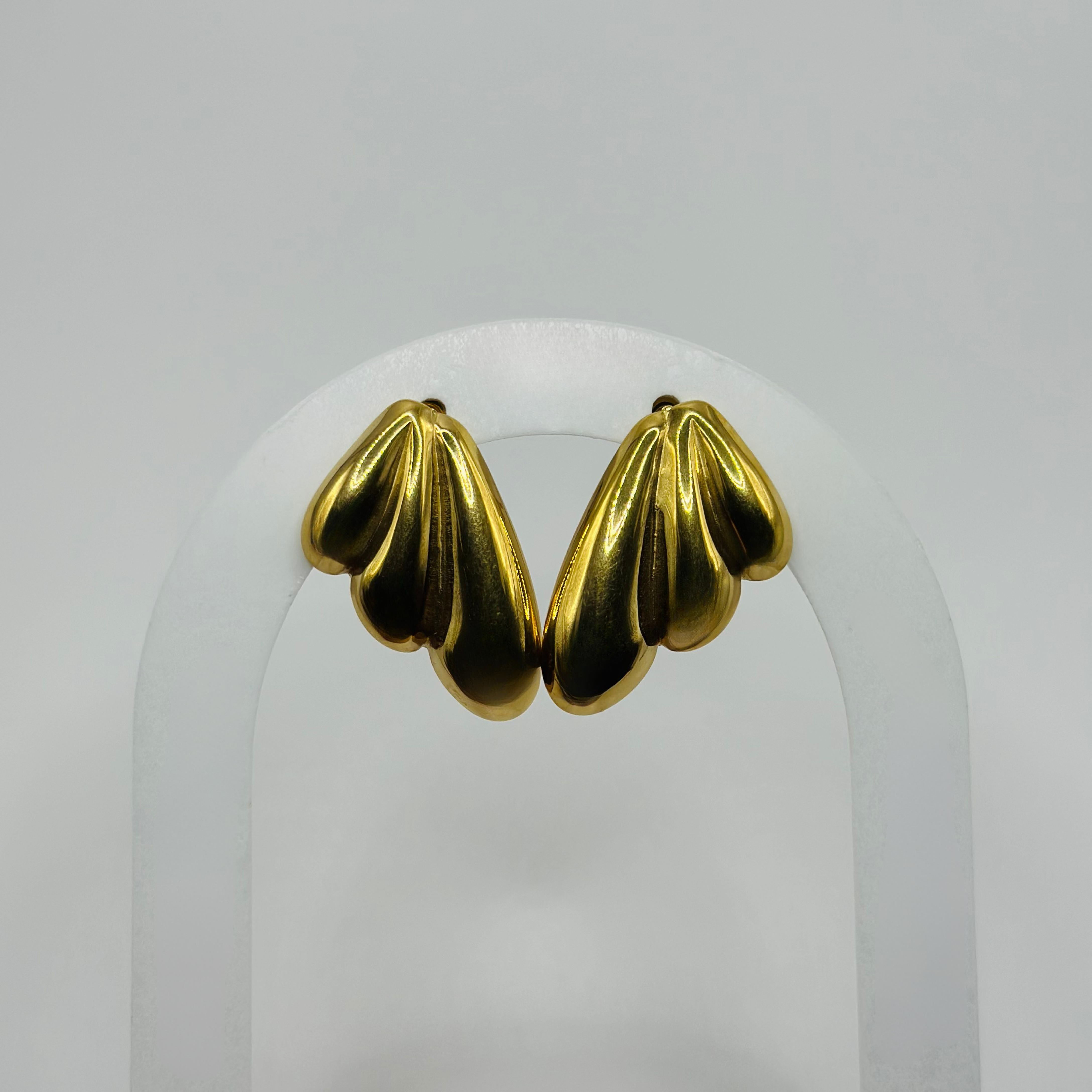 Les boucles SACHA évoquent les coquillages dorés échoués sur la peau. Leur design galbé et structuré attire la lumière, sublime le visage et donne du caractère à chaque silhouette. Une pièce forte, comme une empreinte de la mer gravée dans le métal.