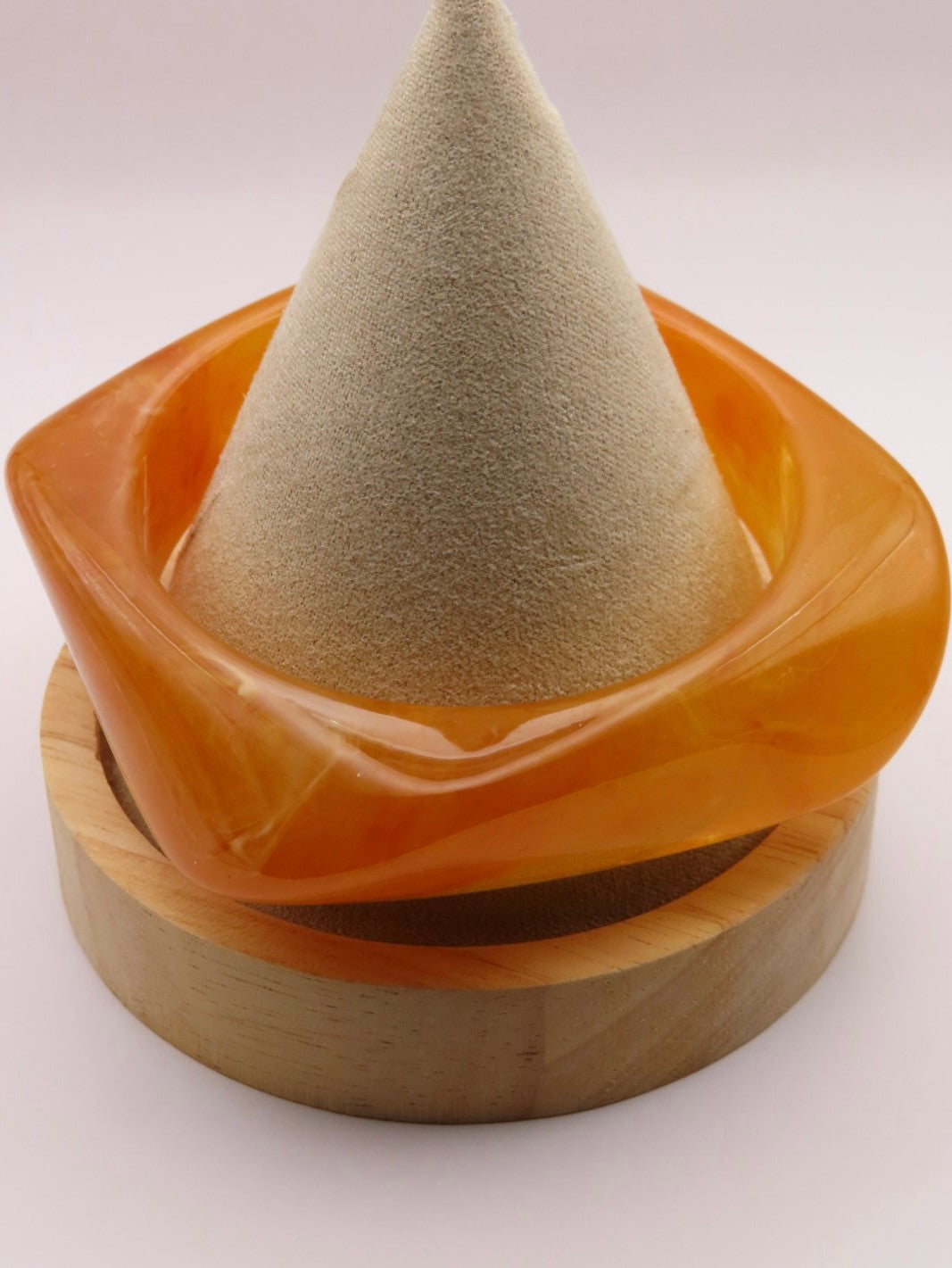Son design marbré dans des tons ambrés et son volume généreux en font une pièce forte, solaire, presque sculpturale.