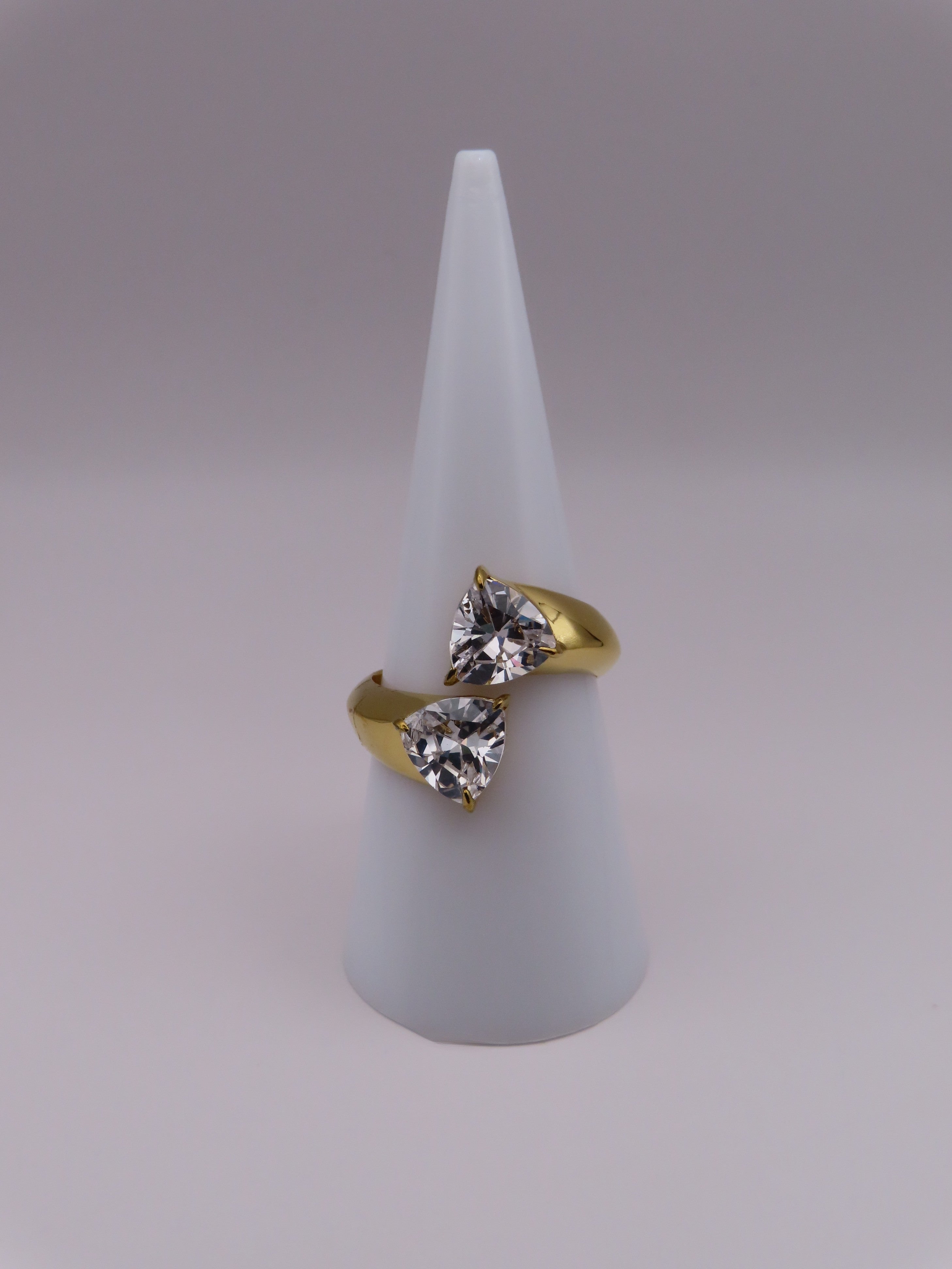 Sharelle, une bague éclatante qui capte la lumière et les regards. C’est la rencontre entre deux pierres taille poire et un design audacieux, lumineux, moderne et assumé.